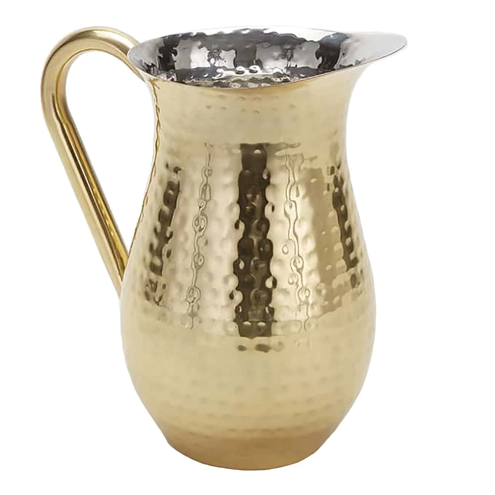 Featuring a beautiful hammered finish, this gold pitcher is tres fashionable!