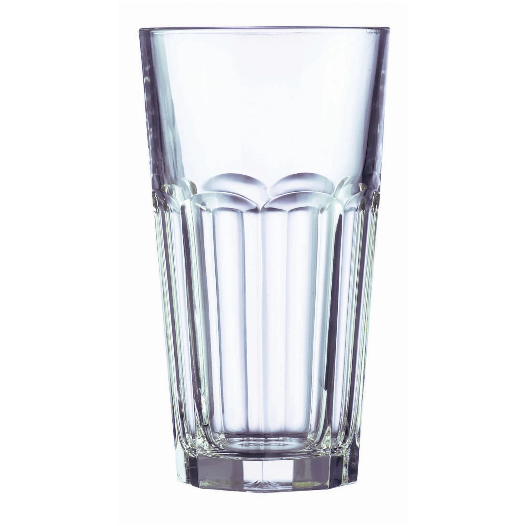 This Gotham 16 ounce cooler glass features a classic, multi‐faceted design adds a splash of European cafe culture. Fully Tempered glass brings strength and durability.