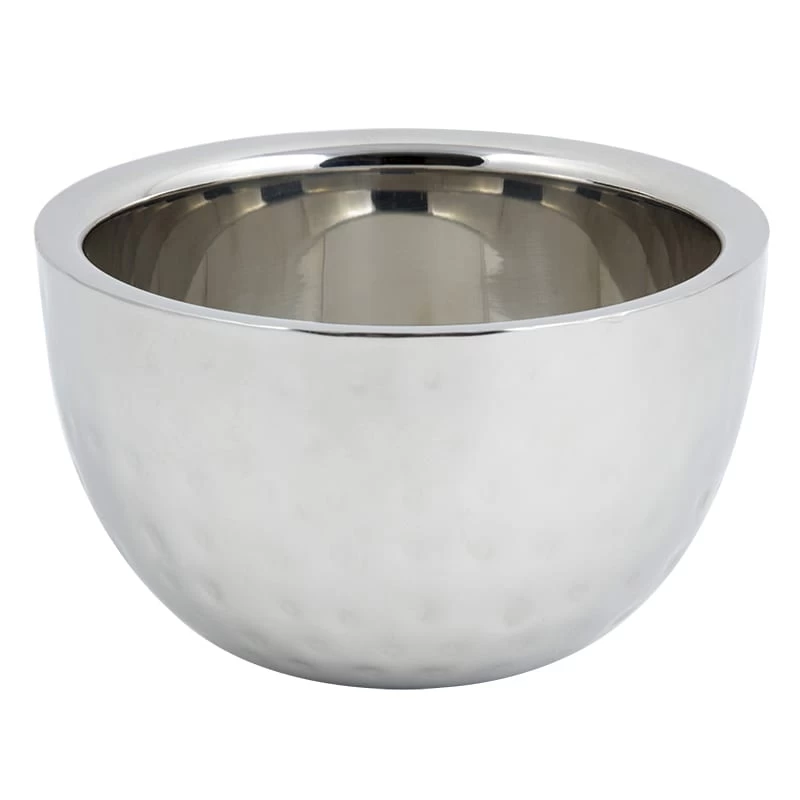 This Bon Chef 1.25 Qt. serving bowl has a stylish hammered finish. The double wall insulation keeps food hot or cold longer than other bowls.