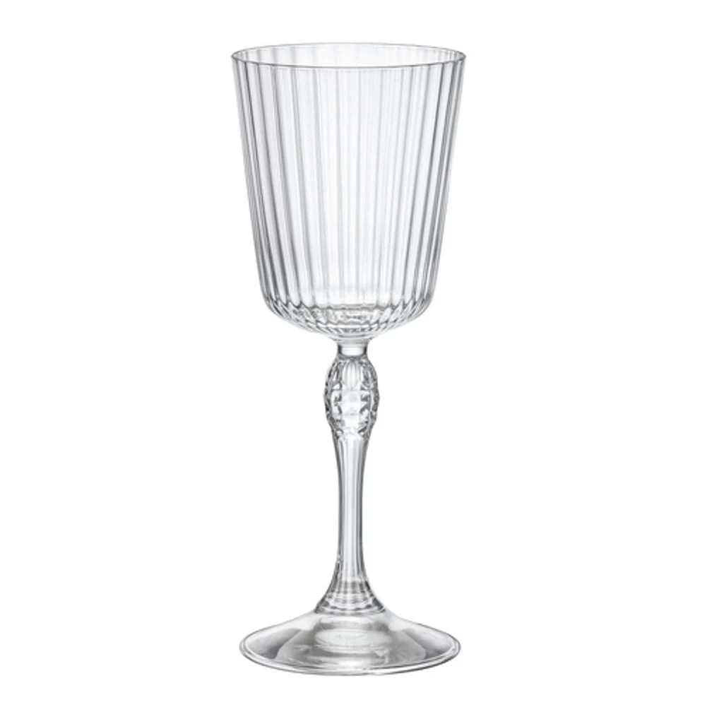 This cocktail glass is part of the America ’20s Collection from Bormioli Rocco. These 1920s-inspired glasses bring the glamour of trendy American jazz bars through to today. Where conversation was about art and the ambiance was of unprecedented newness and enthusiasm. All the products are characterised by an elegant and original vintage style, in line with the latest trends, and are embellished with dense facets that develop precious light effects, enhancing the colors of cocktails and drinks.