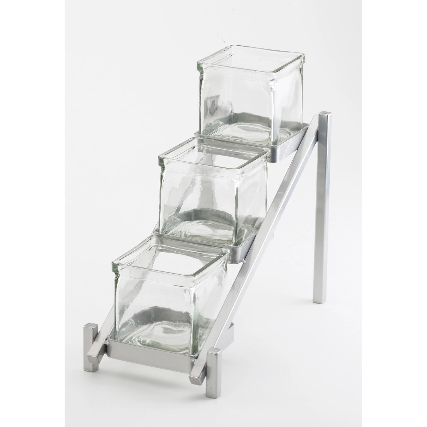 This Cal‐Mil One by One Glass Jar Display is an attractive way to hold condiment packets for self‐serve areas. This display includes 3 glass jars and has a silver‐colored metal base.