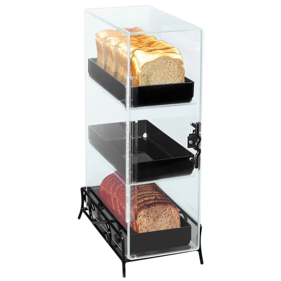 This Cal‐Mil Bread Box has a Wire Base and Black Trays. Helps keeps Bread Fresher longer.