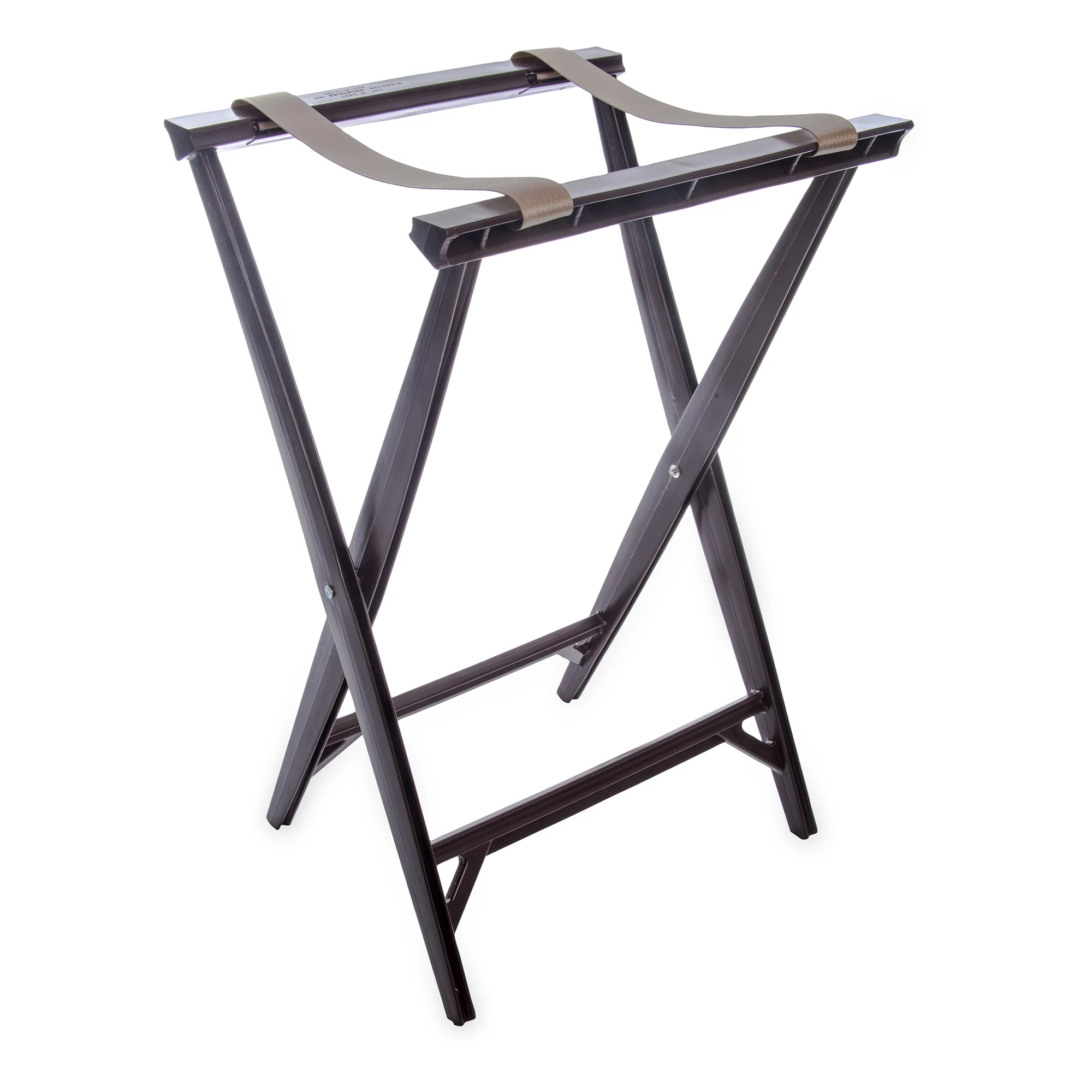 This plastic tray stand provides strength and durability and it has a sanitary, non-porous and non-corrosive finish that cleans easily with a damp cloth.