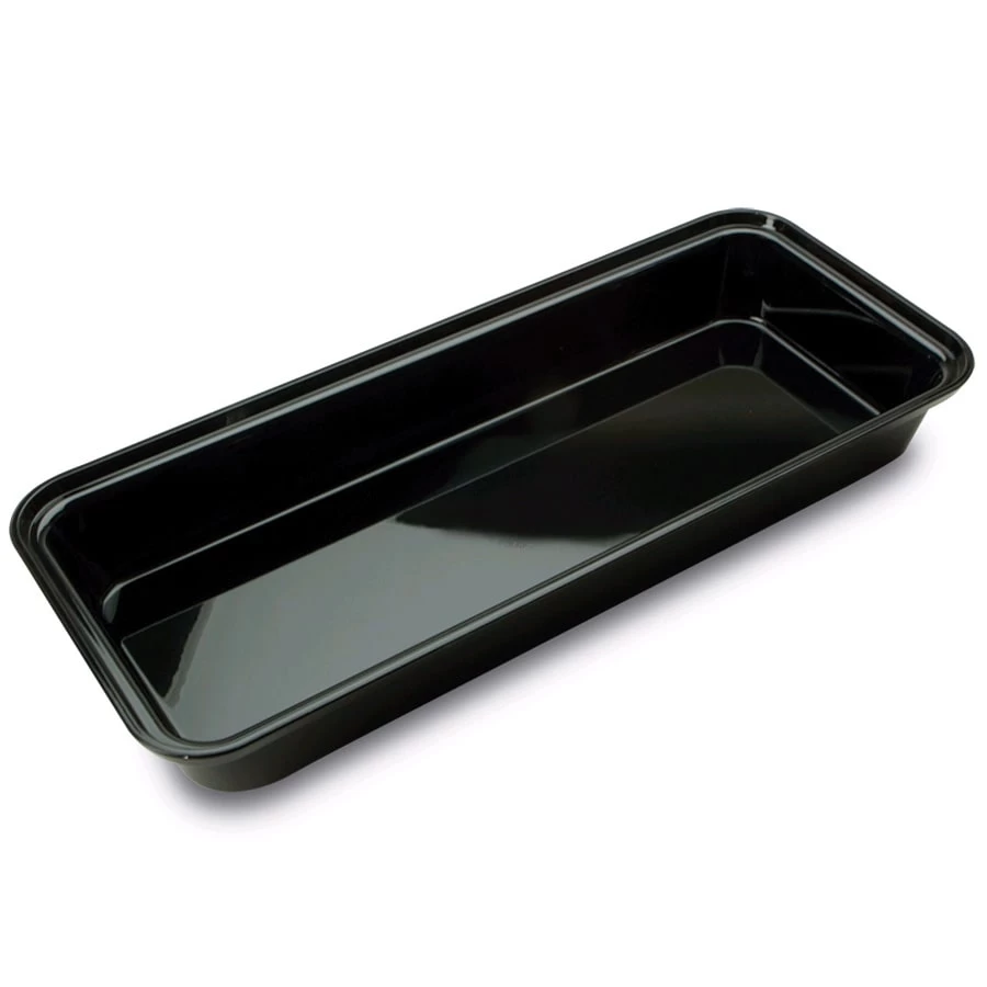 This Delfin Market Tray comes in a sleek glossy black color and is perfect for a variety of food service operations. It has a 2.5 Qt. capacity, and is constructed from highly break-resistant acrylic, making it ideal for everyday use.