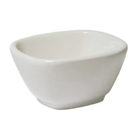 This 2 ounce square ramekin is made from vitrified china. It is also single‐fired and lead‐free.