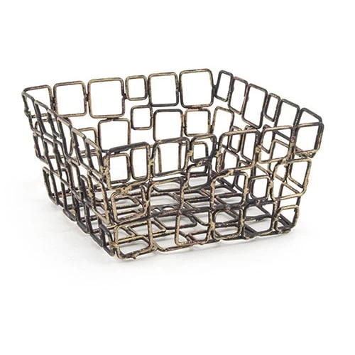This Front Of The House® Wireware™ Coppered Link Basket is great for serving bread and other foods. It comes in a 6″ square size and is hand-fused and powder-coated.