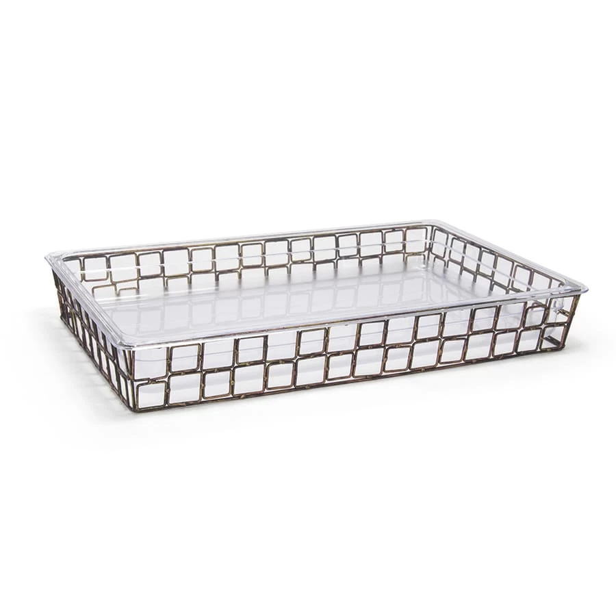 This Front Of The House® Wireware™ Housing / Pan has a shallow design with a 3″ height. It has an 8 Quart capacity, and features wire and stainless steel construction with a plastic insert. It comes in a copper color.
