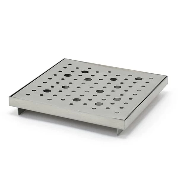 This Front Of The House® Dots Drip Tray is footed and has drain holes to catch drips. Great for use under coffee pot spigots or under pitchers to catch condensation.