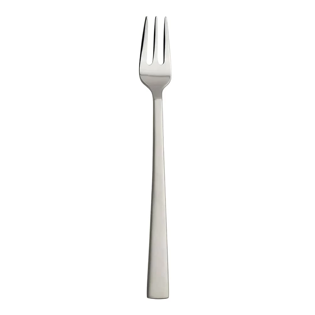 This 6-3/8″ cocktail fork is part of the Ridge Flatware Collection by Folio and features a classic design with a unique arch at the base of the tines and beautifully brushed satin finish handles.