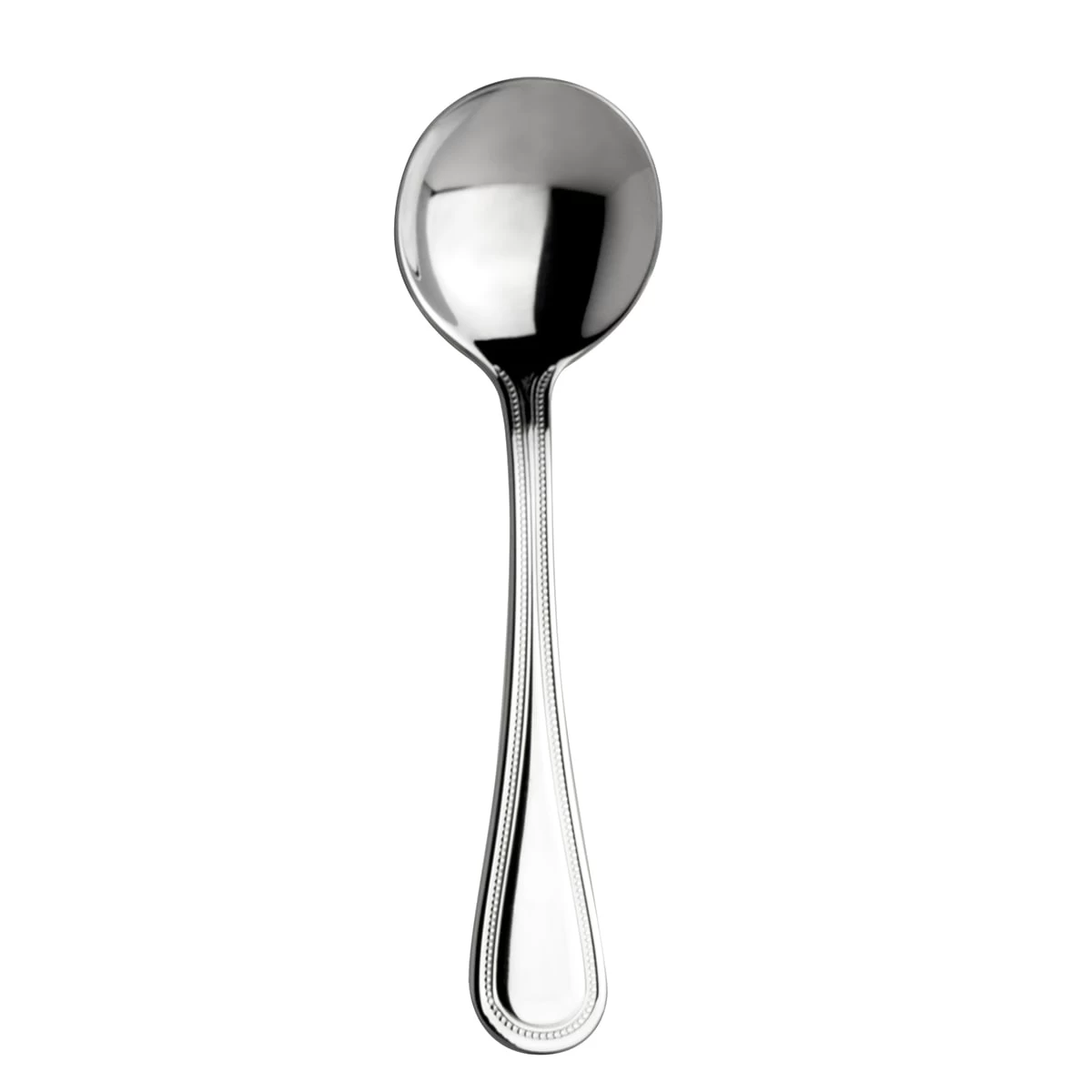 The Logan flatware collection from Folio lets you create a traditional presentation with it’s classic beaded‐rim design. Made of 18/10 stainless steel, this 6.5″ soup spoon is suitable for any occasion.