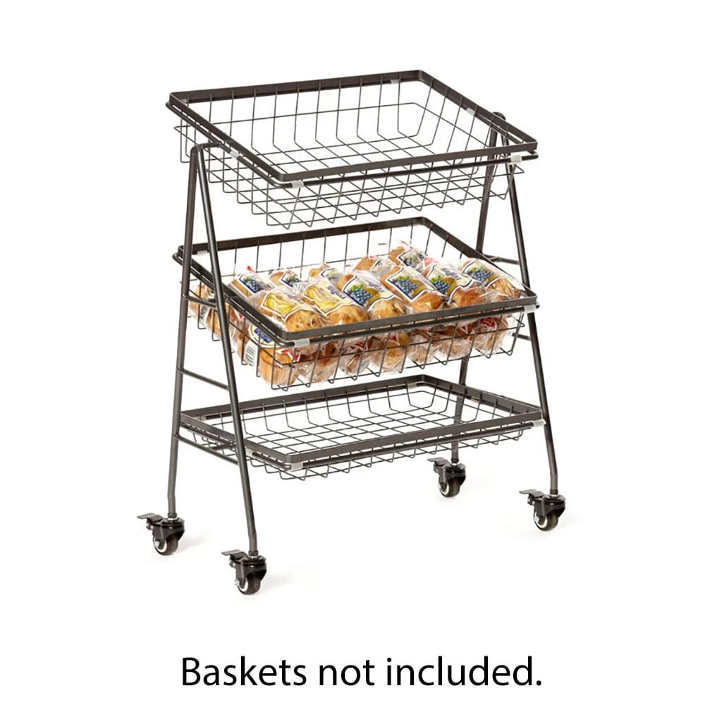 This rectangular 3-tier mobile merchandiser stand from G.E.T. includes wheels and is perfect for grab and go stations, meeting rooms, hospitality breakfast bars, coffee stations, beverage stations and more!