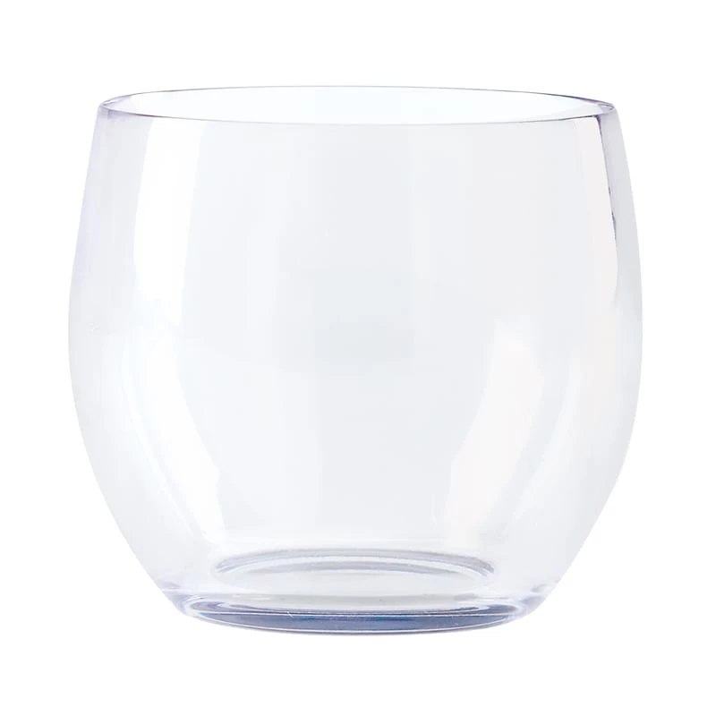 This 8 ounce stemless wine glass is made using BPA free SAN plastic. These tumbler are break resistant and dishwasher safe.