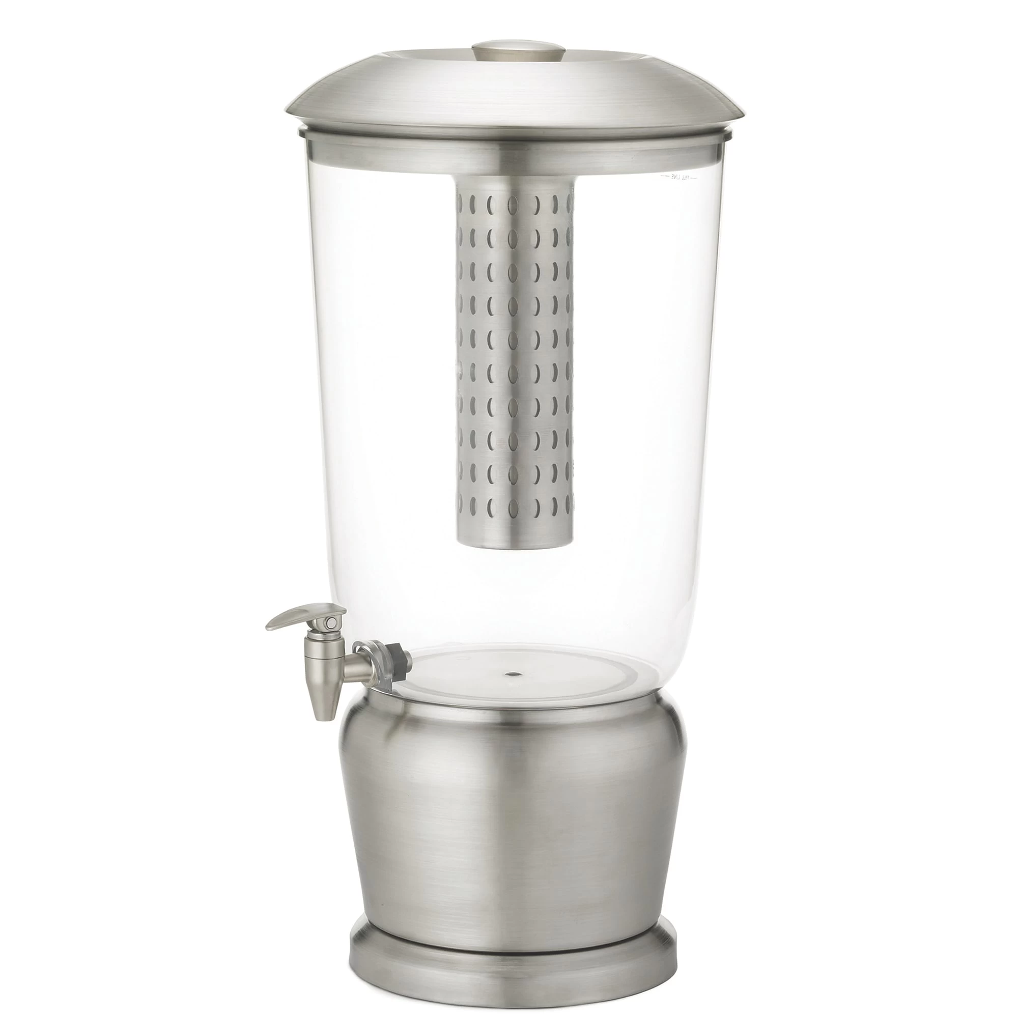 This large, 5 gallon beverage dispenser from TableCraft is perfect for buffets or catered events! It features a removable infuser and center ice core. This dispenser has a BPA free reservoir and the stainless steel construction will add a modern look to any dining area!