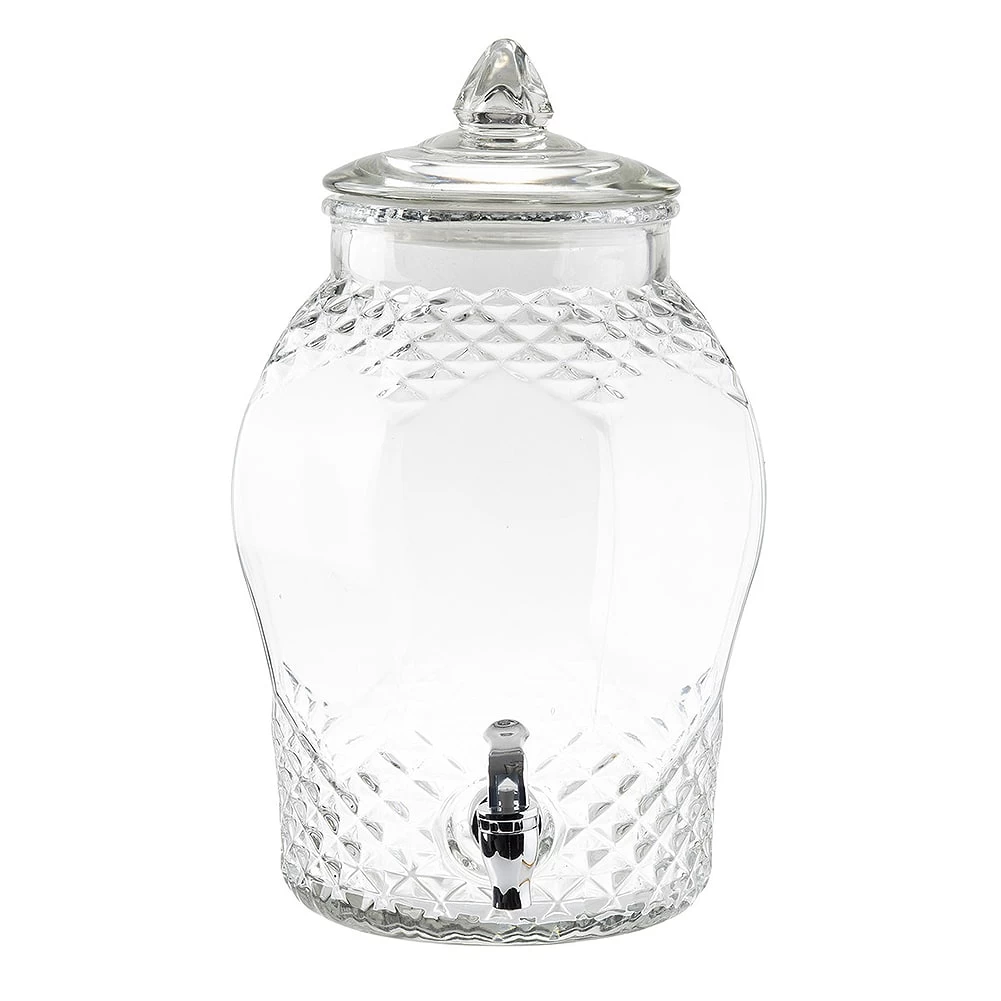 This 2 gallon clear glass beverage dispenser from TableCraft features a decorative design and is ideal for colorful cocktails or drinks with pretty garnishes. This durable dispenser can be used for every type of party or event, and is suitable for indoor and outdoor use. It includes a chrome plated faucet and a chalkboard necklace for labeling your drinks.