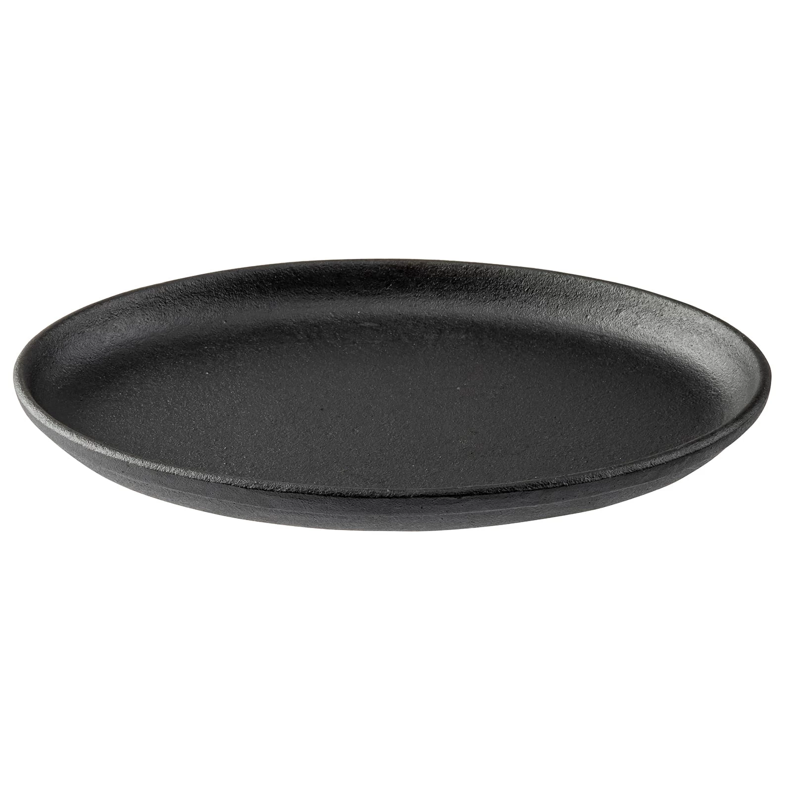 This oval sizzle platter from TableCraft features durable cast iron construction and provides a “home‐cooked meal” feeling to your serving presentation.
