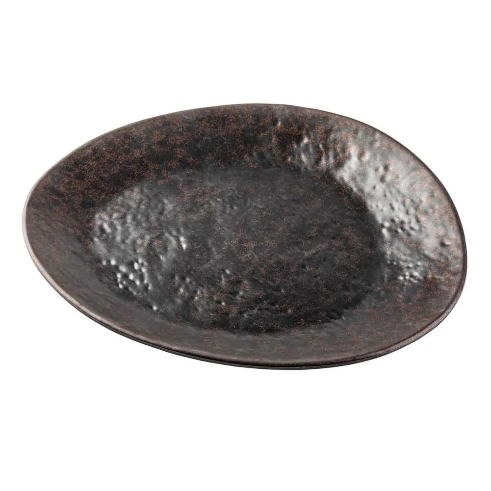 This 10.5″ plate features an irregular rim shape to replicate authentic handmade pieces! The matte brown finish with copper flecks of The Lunara Collection™ from TableCraft captures the look of hand-hammered metal for a truly unique serving and tabletop presentation. The wide selection of melamine trays, bowls and plates are durable and dishwasher safe, making them not just beautiful, but long-lasting.