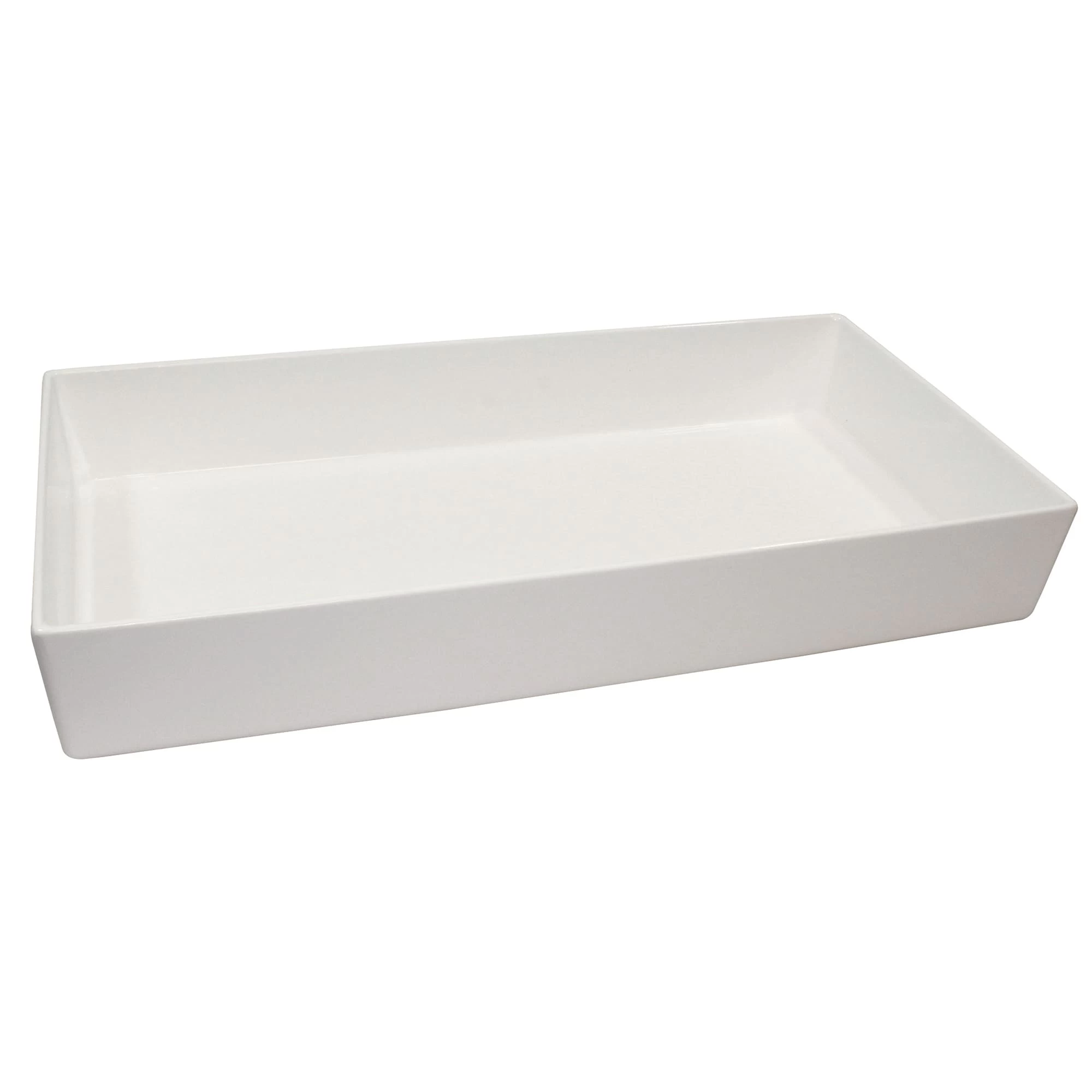 This large 10 quart rectangular bowl from Professional Bakeware is part of the Contemporary Collection™ and features a straight‐sided design for a modern and attractive presentation. This 20″ x 10″ bowl is 3″ high and is great for buffets and salad bars! The DuraCoat™ Aluminum coating provides an ideal cold holding solution in virtually any environment.
