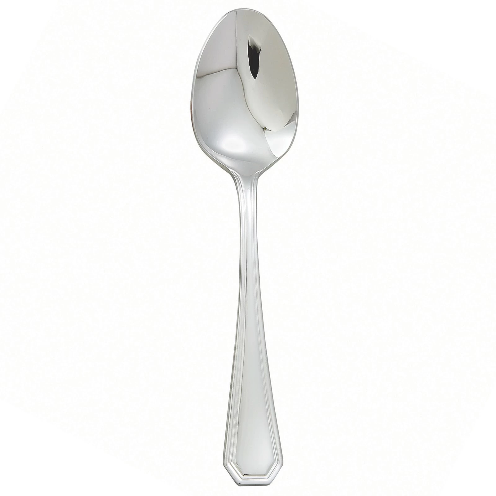 This 7.4″ dinner spoon from Winco is part of the Victoria Collection and features extra heavyweight 18/8 stainless steel construction with a beautiful mirror finish. It has simple aristocratic lines on the handle that makes is perfect for a formal setting.